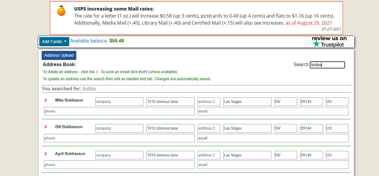 If you want to update an address simply enter the first letters of the name in the search field on the address book page.